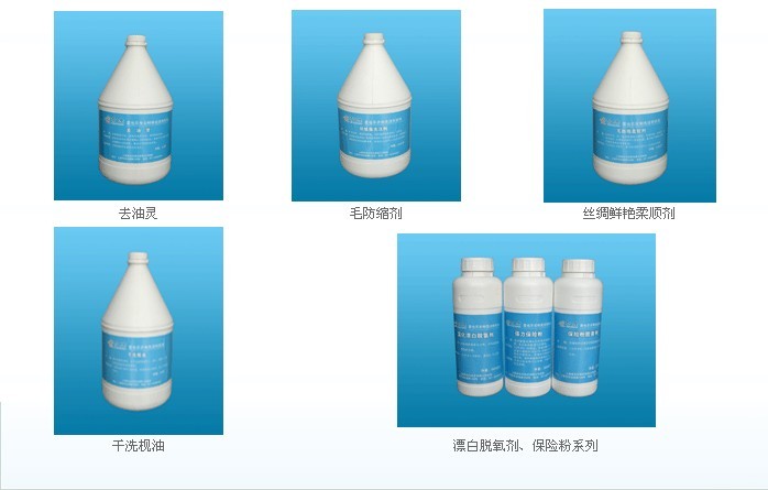 簡(jiǎn)介:多種洗滌劑高性能環(huán)保洗滌劑 “天然生化洗”系列 1、天然生化助洗劑:蛋白質(zhì)污垢是衣物在穿著過(guò)程中最容易沾附的主要污垢,此類(lèi)污垢在衣物中凝固以后,一般化學(xué)界面的去污清洗劑很難將其分解乳化和清洗掉。“天然生化助洗劑”富有超強(qiáng)催化作用的酵素蛋白質(zhì),它能夠輕而易舉地將蛋白質(zhì)污垢分解乳化,直至將其分解成氨基酸為止,最后變成水和二氧化碳,很容易就被衣物上清洗掉了。它對(duì)環(huán)境沒(méi)有任何危害,人體皮膚接觸以后也不會(huì)有任何傷害,是真正的綠色環(huán)保洗滌劑?! ?、生化精細(xì)洗滌劑:是一種低溫強(qiáng)效洗滌劑,以常溫就能輕易使污垢分解乳化,尤其是油脂類(lèi)的污垢。由臺(tái)灣正章喜也樂(lè)獨(dú)家開(kāi)發(fā)的強(qiáng)效生化精細(xì)洗滌劑,能百分之百的輕易去除頑固的污垢,而它對(duì)面料也沒(méi)有傷害?! ?、酵素彩漂粉:衣物色素及變質(zhì)污垢在清洗過(guò)程除了需要做漂白,還需要清洗。臺(tái)灣正章喜也樂(lè)研發(fā)的酵素彩漂粉,是一種既能清潔,又能去除色素、黃斑的高效洗劑,它能使衣物更加潔白而它色澤鮮艷?! 巴跖迫n劑”系列: 1、去漬A劑:油墨、油漆、膠水是當(dāng)今洗衣行業(yè)最頭疼、最難去除的污漬。去漬A劑能有效地去除這些特殊污漬,為水、油兩用型的?! ?、去漬B劑:干涸油、膠塑品之類(lèi)的污漬是一般洗衣店最難去除的頑漬。去漬B劑是去除這類(lèi)污漬的最有效的去漬劑,而它對(duì)任何面料纖維都沒(méi)有損傷,是水、油兩用型的?! ?、去漬C劑:由臺(tái)灣正章喜也樂(lè)多年研究、精心配制的特殊污漬去除劑,能將自然界中(植物、動(dòng)物、礦物)的污漬輕易地降解、水化、去除,被國(guó)內(nèi)干洗行業(yè)稱(chēng)為“去漬萬(wàn)靈劑” ?! ∪芴匦S斑去除劑系列:對(duì)非常頑固的黃斑有特別的去除效果,尤其是酵素彩漂粉沒(méi)有辦法處理的陳年黃斑效果更佳,其穩(wěn)定性好,不損傷面料,是臺(tái)灣正章喜也樂(lè)去漬產(chǎn)品中的王牌?! ∪f(wàn)能去色修正劑系列:萬(wàn)能去色修正劑,是針對(duì)衣物串色、搭色的去除劑。對(duì)衣物本色沒(méi)有傷害,而對(duì)去除和修正洗滌過(guò)程中串色、搭色、移色,效果非常明顯,而對(duì)任何的面料纖維都沒(méi)損害,是非常溫和的去色劑,操作也非常容易掌握。