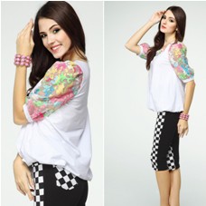 簡介:寬松休閑的白色T恤,加上鏤空繡花袖看上去非常的時尚,個性拼接設計將不同的面料拼接在一起別具一個,獨具個性,整體樣式設計不再單調,再搭配永恒經典的黑白配的五分褲,具有獨特的時尚,這樣的搭配看上去非常的舒服不會顯得突兀也不會太過平庸,這就是佳莉絲休閑女裝最新設計的女裝,它以不一樣的視覺和設計給讓萬千女性走在時尚前沿。