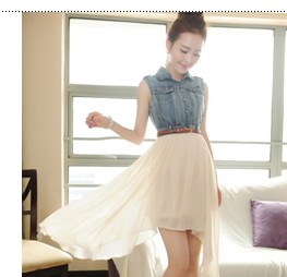 格雷詩芙水洗牛仔+白色雪紡連衣裙 /