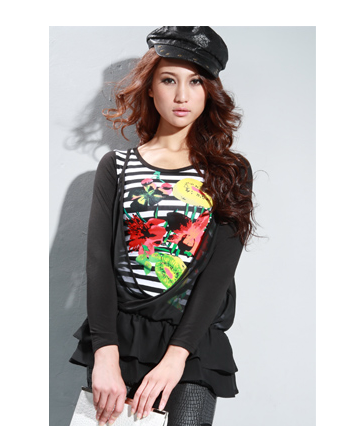詩薇達女裝-衣密語時尚優雅手繪荷葉邊下擺假兩件長袖T恤 /