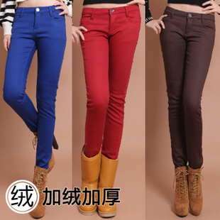 韓版保暖彩色彈力小腳褲牛仔彩褲 大碼糖果色加絨加厚鉛筆褲批發 /
