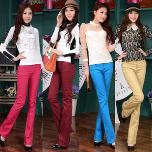 2014新款糖果色彩色微喇褲 中腰彈力修身顯瘦韓版彩褲喇叭褲女909 /