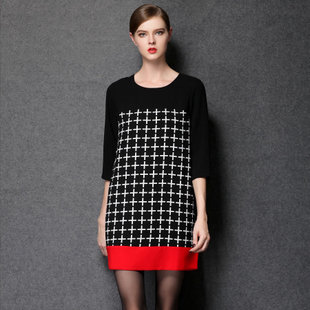 2014秋裝新款 歐美大碼女裝 撞色氣質連衣裙 胖mm連衣裙批發 /