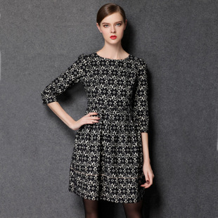 2014秋季新品歐美大牌秋冬款大碼OL胖mm寬松顯瘦女裝高端連衣裙 /