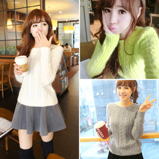 [A類]C529-8152新款韓版圓領麻花短款毛衣套頭打底女針織衫10-7 /