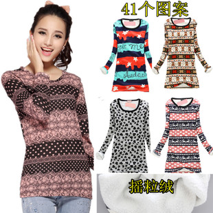 特價女式T恤長袖秋冬打底衫 休閑加絨加厚中長款搖粒絨保暖打底衫 /