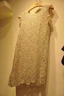 2014韓國東大門代購春夏新款女裝無袖亮片連衣裙蕾絲圓領打底裙 /