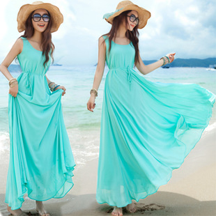 外貿(mào)女裝 2014夏款雪紡連衣裙 波西米亞長裙 度假沙灘裙 /