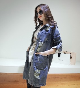 2014秋裝新款牛仔外套 女 韓版寬松破洞中長款牛仔衣 外套潮 /