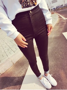 2014韓國stylenanda復古高腰緊身顯瘦 純色小腳褲 牛仔褲 1833 /