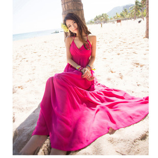 爆款促銷外貿女裝夏季新款雪紡連衣裙 韓版吊帶沙灘裙 低價批發 /