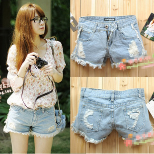 淘寶爆款牛仔短褲時尚韓版短褲女貼布修身磨破牛仔女短褲批發代理 /