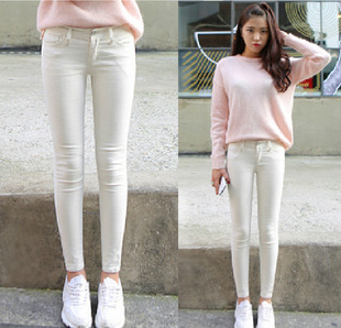 2014春裝新款 韓國顯瘦緊身米白色小腳牛仔褲女鉛筆褲子潮2089# /