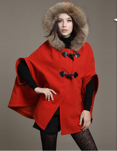 2014秋冬新款韓版流行學校時尚斗篷毛呢 大碼女裝呢子外套 /