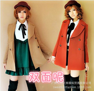 2014新款毛呢大衣韓版修身雙排扣呢子大衣外套秋冬大衣 /