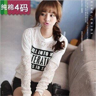 2014秋裝新款韓版女裝 韓國休閑圓領印花蕾絲拼接女式衛衣5227 /