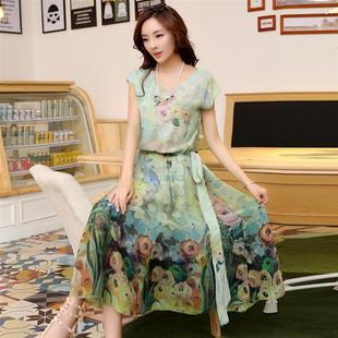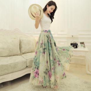 OLJ 夏季新品修身波西米亞碎花半身裙雪紡大擺長裙子2227 配抹胸 /