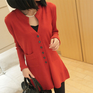 2014春裝新款韓版女士毛衣外套 大碼修身顯瘦長款女式針織衫開衫 /
