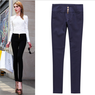 2014新款女褲 高腰彈力鉛筆褲 顯瘦小腳褲 加厚加絨大碼女式褲子 /