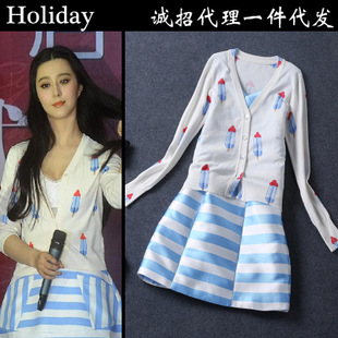 歐洲站2014秋冬新款女裝范冰冰休閑雪糕連衣裙兩件套女裝代發 /
