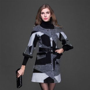 歐洲站時尚中長款毛呢大衣女裝一件代發歐美明星同款冬季外套 /
