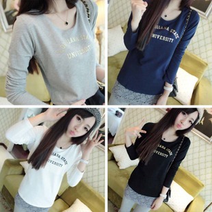 廠家直銷批發2014秋裝新款長袖燙金字母簡約加厚打底T恤-8029 /