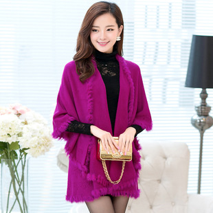 2014秋冬新款溜須毛領毛衣開衫 針織衫披肩兩穿狐貍毛拼接外套潮 /
