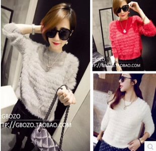 2014秋冬新款韓版女裝仿貂絨毛茸茸開叉套頭馬海毛女式毛衣好質量 /