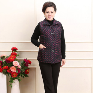 【雅姿韻媽媽裝】2014秋冬加絨加厚馬甲上衣 翻領紐扣無袖棉馬夾 /