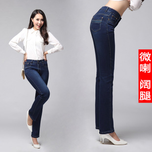 廠家直銷女式牛仔褲 高腰大碼微喇叭闊腿中年女長(zhǎng)褲 2014秋季新款 /