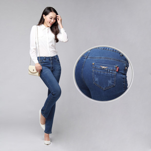 2014秋季新款 批發(fā)中高腰女褲子彈力大碼女裝長(zhǎng)褲直筒牛仔褲 /