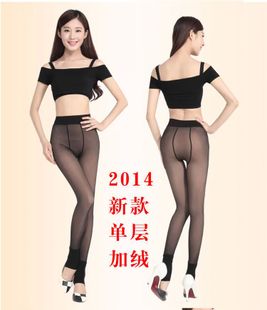 批發2014秋冬新款假透肉無縫單層一體打底褲透肉色加絨拉絨女褲 /