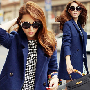 新款女裝羊毛呢女裝外套 韓版修身時尚呢大衣大碼女裝外套批發(fā) /