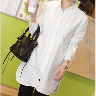 韓國代購女裝簡潔男友風(fēng)寬松大碼長款白襯衫長袖韓版襯衣 /