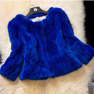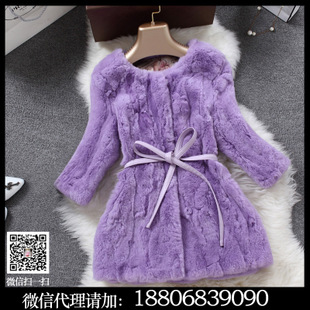 現貨2014新款女裝園領七分袖中長款獺兔毛修身大衣海寧皮草外套 /