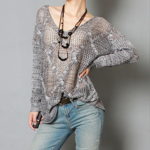 2014新款秋裝 歐美大牌女式鏤空套頭針織衫 寬松大碼薄款長(zhǎng)袖罩衫 /