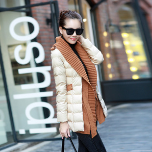 2014冬裝新款氣質韓版優雅修身PU皮拼接毛線領女棉衣 拉迪蔓戈059 /