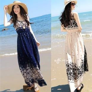 新款無袖碎花雪紡連衣裙波西米亞裙度假沙灘長裙 實拍低到虧本 /
