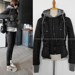 韓國東大門代購女裝針織拼接假兩件外套2014秋冬新款韓版短款棉衣 /