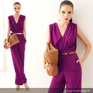 2014新款連身褲子外貿(mào)女裝批發(fā)歐美優(yōu)雅OL深V 連體褲4490 /