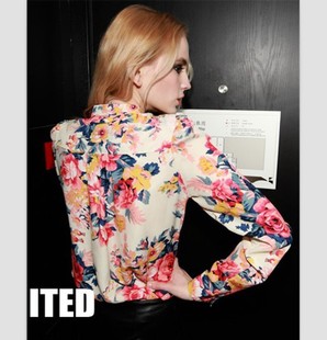 【廠家直銷】 歐美女裝 2013春裝新款個性印花長袖雪紡襯衫2016 /