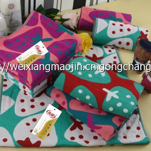 簡介:產品名稱:1077三層布藝草莓毛巾貨號:1077三層布藝草莓毛巾品牌:偉翔偉翔紡織專業從事生產高、中、低檔毛巾,毛巾被,枕巾,全棉,化纖制品。現擁有毛巾制造提花、斷檔等一整套完整生產設備,電腦印花、染整加工輔助設備最為先進,整理包裝要求嚴格,產品有各款提花緞檔、緞邊毛巾、螺旋、割絨、印花毛巾、浴巾、洗涼巾、餐巾、賓館配套巾、超大規格毛巾被等。偉翔牌商標已經國家商標局注冊,是選用線純天然上等一級棉紗、無捻紗、AB紗為原料,經特殊工藝精工制作而成,產品具有光澤明亮、手感柔軟、吸水力強、花型新穎、顏色鮮艷等特點而深受消費者心愛,國內各大毛巾批發市場均有銷售。可參考