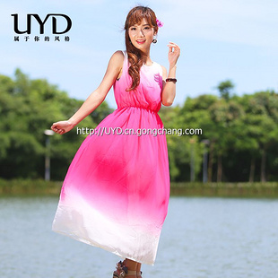 簡(jiǎn)介:長(zhǎng)裙清新氣質(zhì)雪紡連衣裙2014夏新品夢(mèng)幻漸變色圓領(lǐng)無(wú)袖飄逸 仙 商品信息 品名:UYD——2014夏新品夢(mèng)幻天絲連衣裙 貨號(hào):UYD002 原價(jià):698元 顏色:夢(mèng)幻紫色、夢(mèng)幻藍(lán)色、夢(mèng)幻淡玫紅 面料:天絲混雪紡100% 里料:聚酯纖維100% 漸變色36層高境界純色夢(mèng)幻!由中往上下逐漸散發(fā)出爍人夢(mèng)幻仙女,如沉浸童話中的彩虹橋讓人沉醉其中。裙舞飛揚(yáng)猶如七彩音符般躍動(dòng),輕薄的高端雪紡面料營(yíng)造出輕盈感通透感,讓人飄飄然沐浴在這夢(mèng)幻彩虹橋中漫步。若隱若現(xiàn)色彩點(diǎn)綴其間,給人爛漫夢(mèng)幻又高貴的感覺,女神范,富有夢(mèng)幻天仙純色漸變?nèi)缏祜w揚(yáng)般的美感,氣勢(shì)與唯美并存。漫瀾夢(mèng)幻,仙氣十足36道高境界印色天絲雪紡+仿真絲里襯+背部小百褶時(shí)尚韻味設(shè)計(jì)