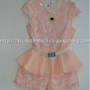 歐洲站2014夏裝新款 優雅荷葉邊水溶花套裝女時尚修身娃娃裝 /