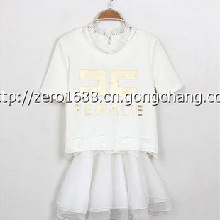2014秋季新款韓國東大門字母印花短袖T+立領(lǐng)背心紗裙套裝4641# /