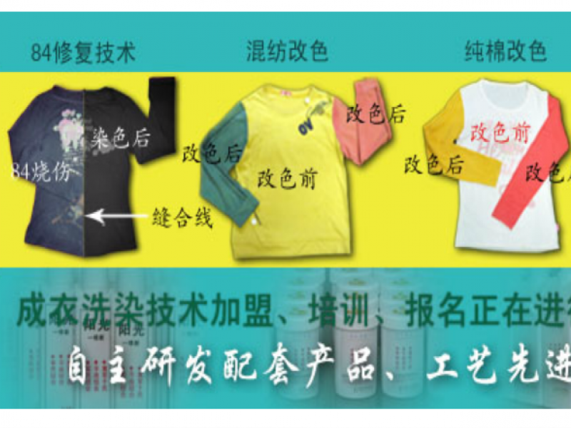 簡介:陜西陽光洗染科技有限公司是一家有自己獨立的培訓基地、擁有衣物護理全部配套產品、干洗設備。擁有84燒傷復員技術、沾色恢復技術、免染加色技術、成衣去污技術、成衣防污技術、成衣染色技術。