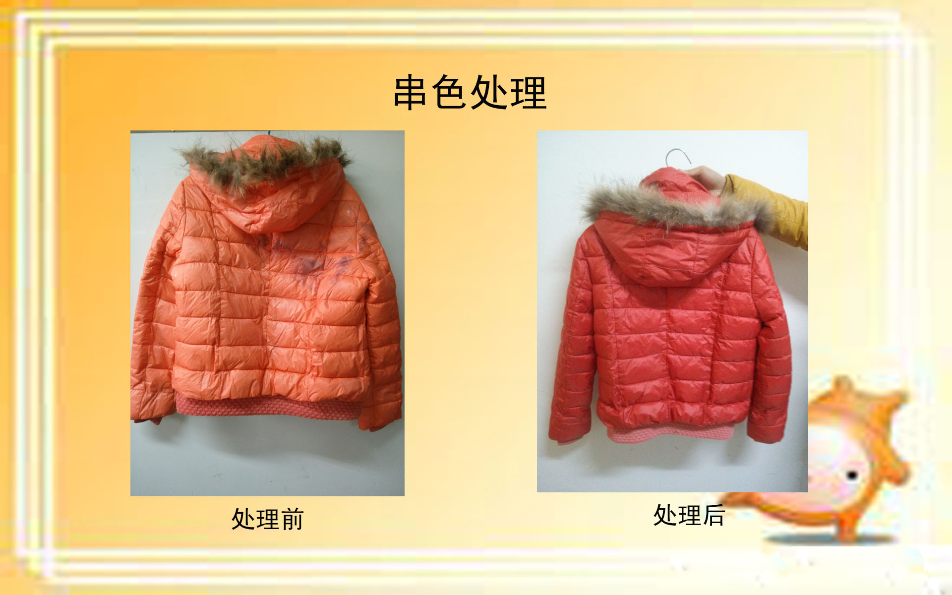 簡介:陽光嫂衣物護理-陽光柔順液系列陽光柔順液用于衣物護理增加衣物手感,光滑度,使衣物柔軟,可使你的服裝不變形不縮水,顏色鮮艷靚麗,皮草染色自然柔順,色澤光亮。陽光科技是我國唯一一家與高校合作——陜西科技大學 的技術、產品研發單位,唯一擁有衣物護理全部配套產品,獨享自主知識產權。做到了不僅使顧客的衣物“衣”舊如新,而且對于21世紀一個追求環保型社會來說,健康也成為產品具有的要求之一。陽光嫂衣物護理產品根據不同的需求選用不同的系列