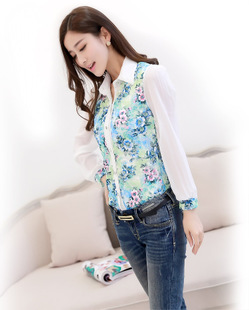 2014秋季新款印花襯衫女長袖 韓版時尚大碼雪紡衫打底衫 廠家直銷 /