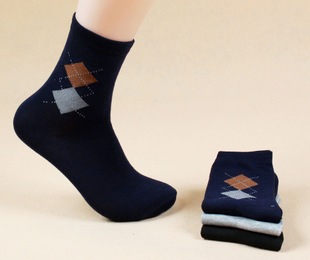 廠家直銷 菱形襪棉秋冬襪子批發(fā)成人男士襪A005 獨立包裝贈品襪 /