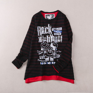 日韓女裝外貿原單批發全棉大童親子裝雙層假兩件休閑長袖T恤P55 /